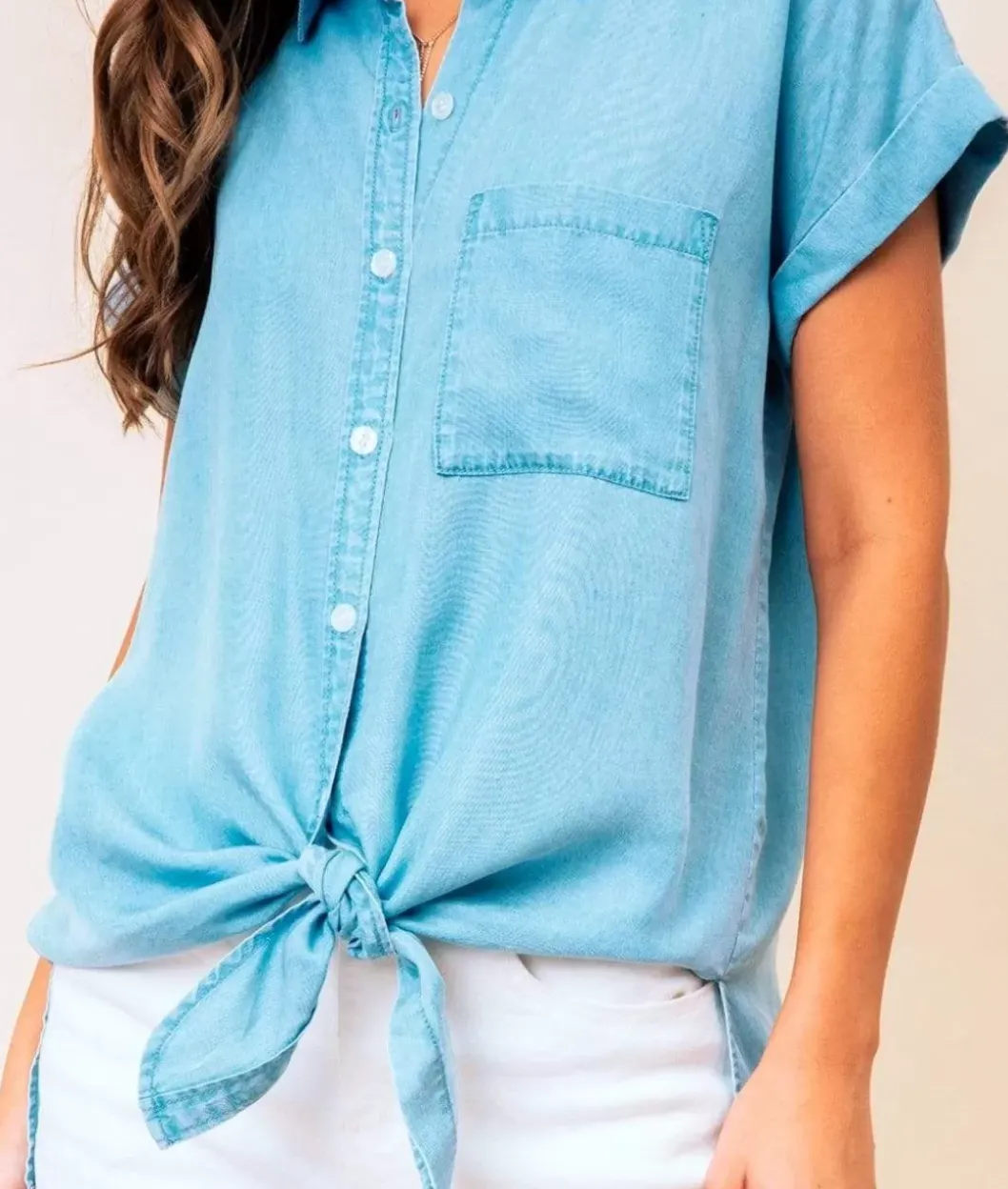 - Folded Sleeve, Left Chest Pocket, Button-Down, Tie Front, Super Soft Tencel.